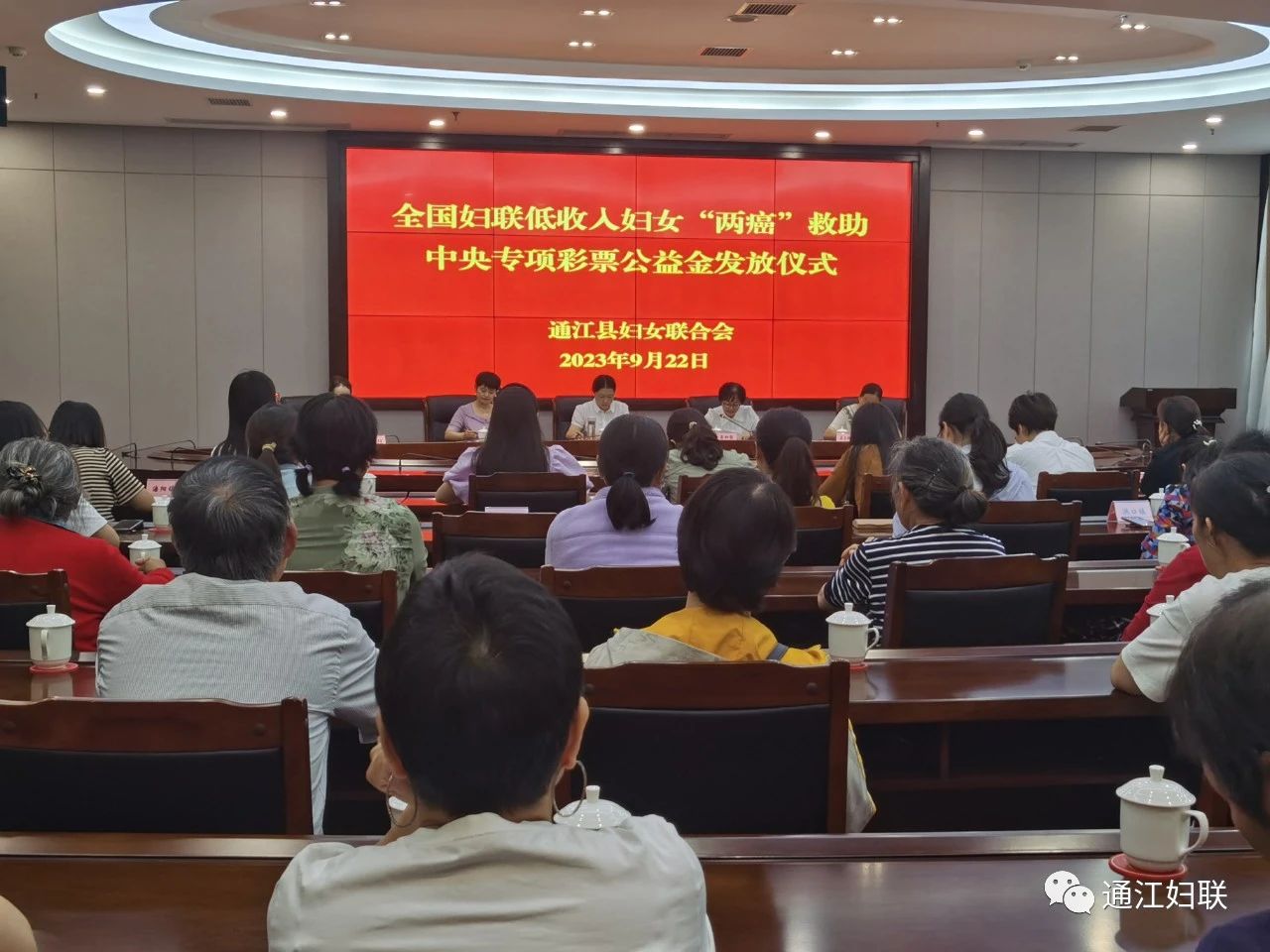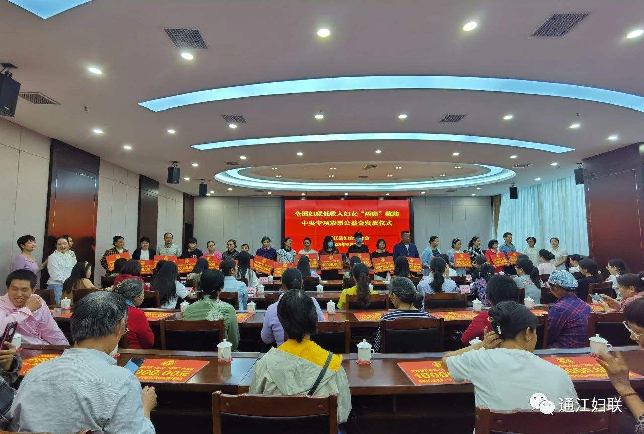 9月22日,县妇联举行全国妇联低收入妇女“两癌”救助中央专项彩票公益金发放仪式,向我县符合救助条件的57名低收入患病妇女发放“两癌”救助资金57万元。副县长孙雪华出席仪式。