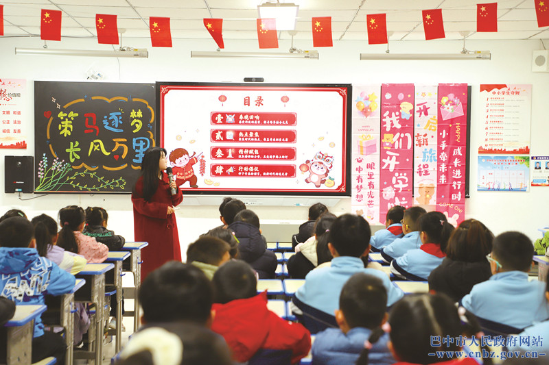 巴州区四小津桥湖校区将红色思政教育与传统文化传承融合,老师们围绕校园文化、爱国主义精神、中华优秀传统文化等相关内容开展“开学第一课”,培养学生爱党、爱国、爱校的情怀。